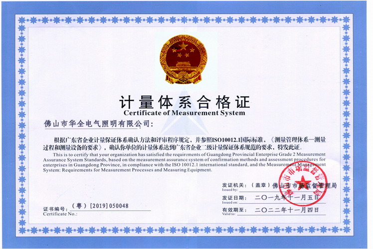 计量保证体系确认是政府对我司在产品质量、计量经营管理、节能降耗、安全生产、环境保护等经营活动中计量保证能力的认可。